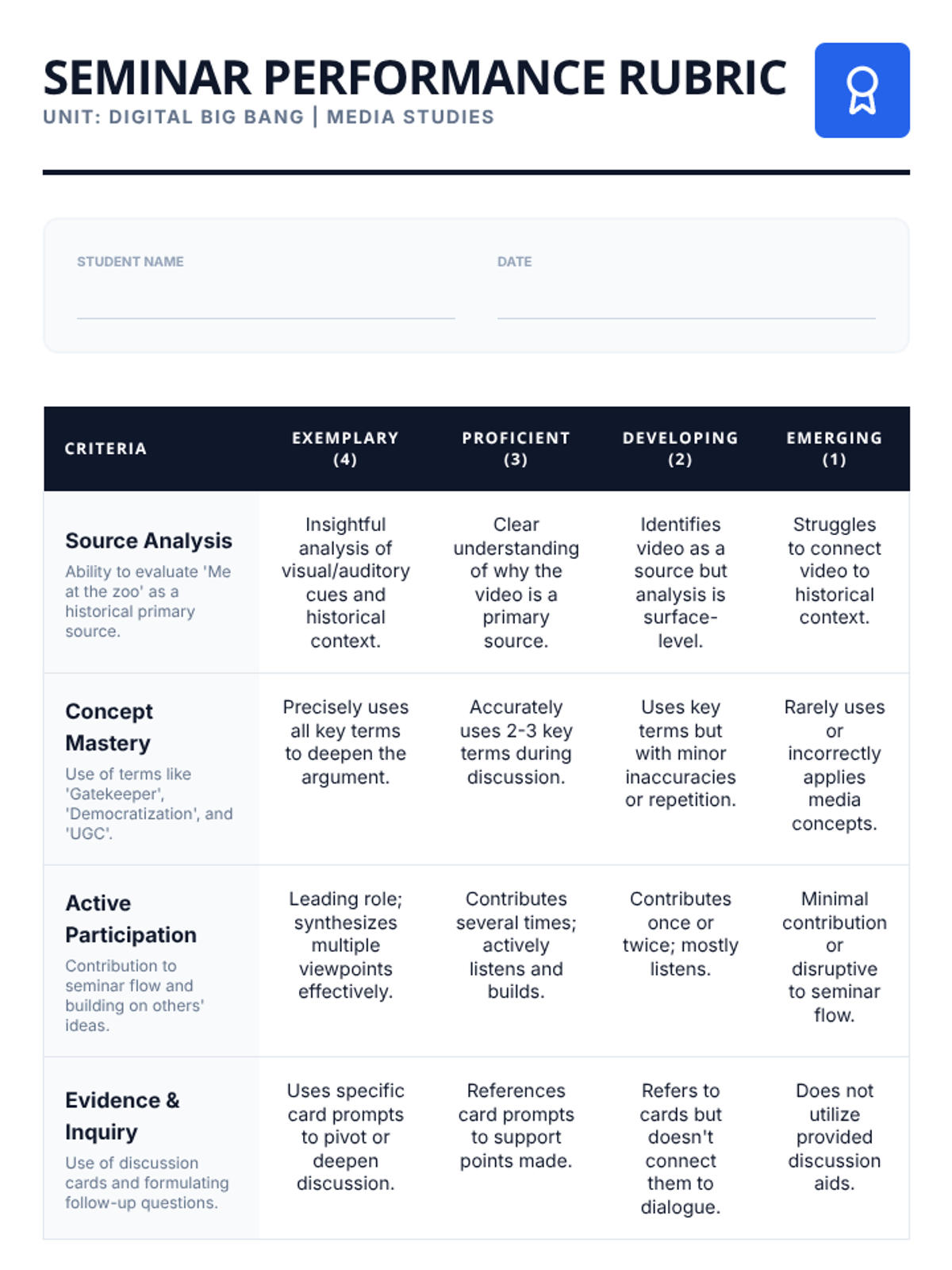 This lesson explores the historical significance of the first YouTube video, 'Me at the zoo,' as a primary source document that signaled the shift from gatekeeper-controlled media to user-generated content and the democratization of information. Students engage in a Socratic Seminar to analyze how this low-fidelity 19-second clip fundamentally changed global media consumption and production.