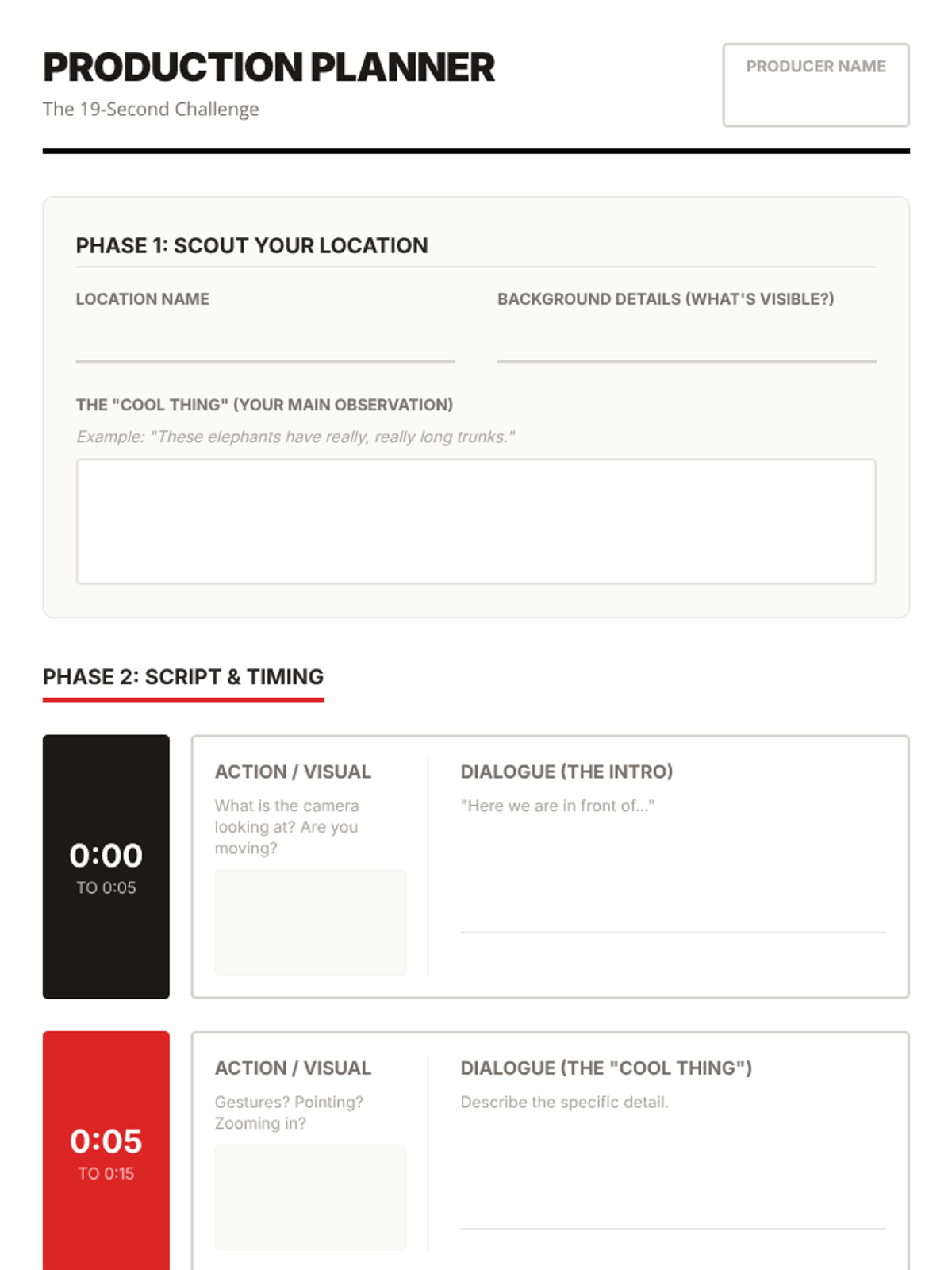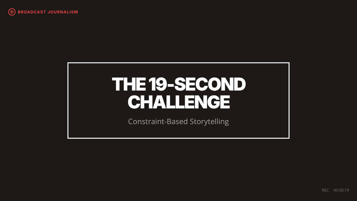 A high school journalism lesson focused on concise storytelling and on-camera presence using a 19-second video constraint inspired by the first YouTube video.