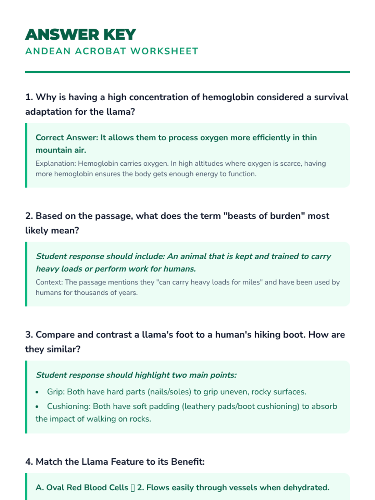 A comprehensive science lesson for 4th graders exploring llama adaptations, habitat in the Andes Mountains, and their role in the ecosystem.