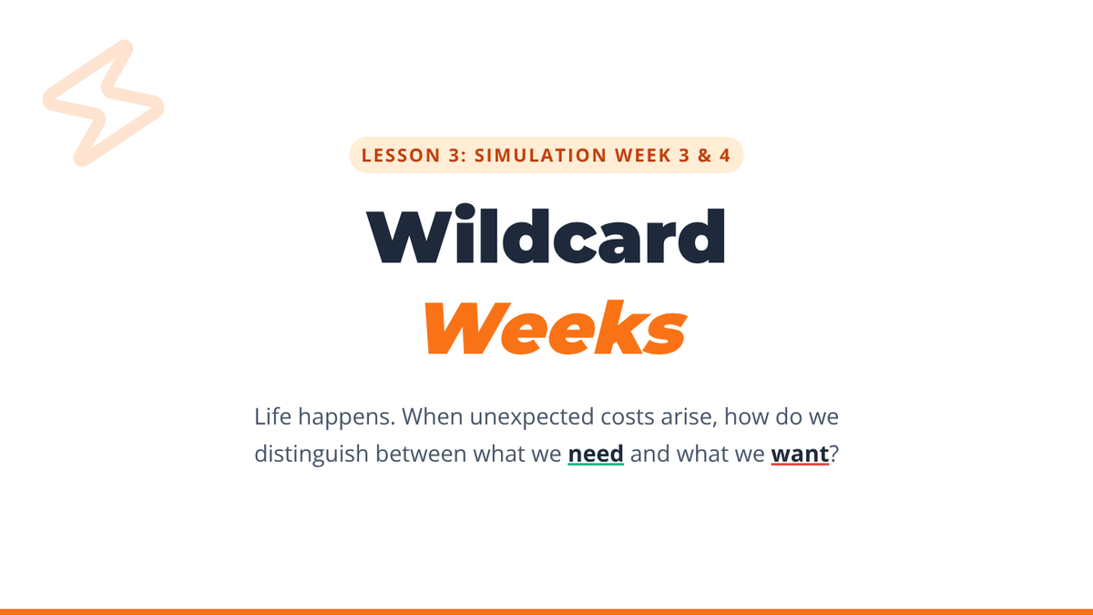 Through a 'Life Happens' simulation, students practice adjusting their spending and making trade-offs between needs and wants.