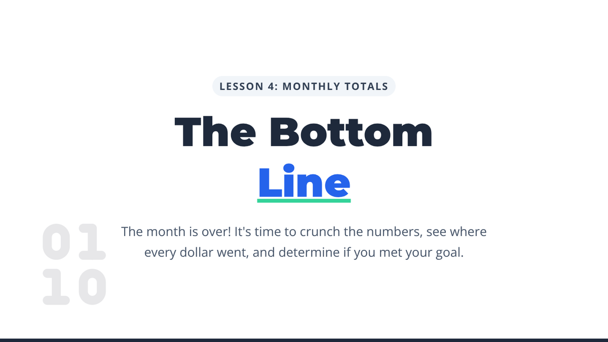 Students calculate their final monthly totals, identifying surpluses or deficits and visualizing their spending patterns.