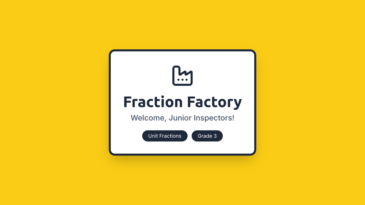A visual introduction to unit fractions for 3rd grade students, featuring a 'Fraction Factory' theme. Includes slides on the parts of a whole, the requirement for equal sizes, naming numerators and denominators, and an interactive manipulative activity.