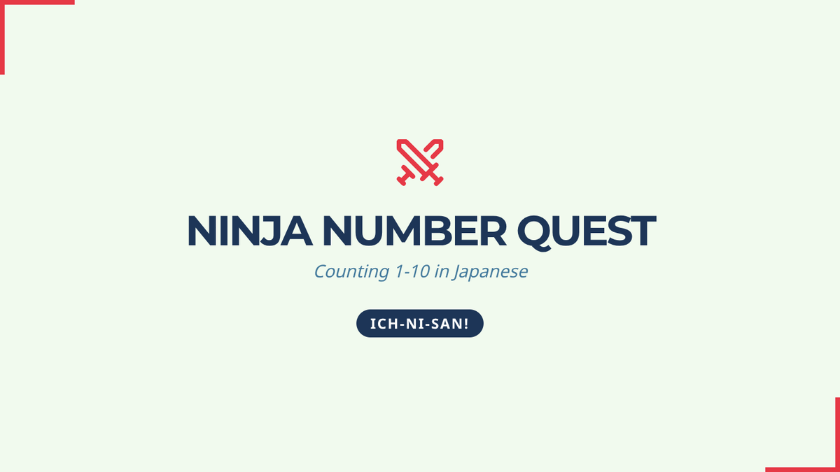 A visual presentation to introduce Japanese numbers 1-10. Includes kanji, romaji, pronunciation guides, and a rhythmic ninja-themed chant with movements.