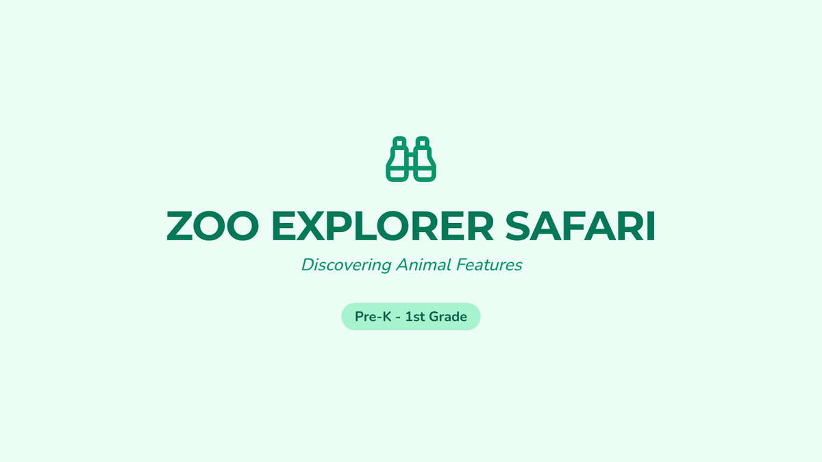 A bright and engaging slide deck for Pre-K to 1st grade students, featuring the 'Me at the zoo' video and interactive discussion prompts about animal features.