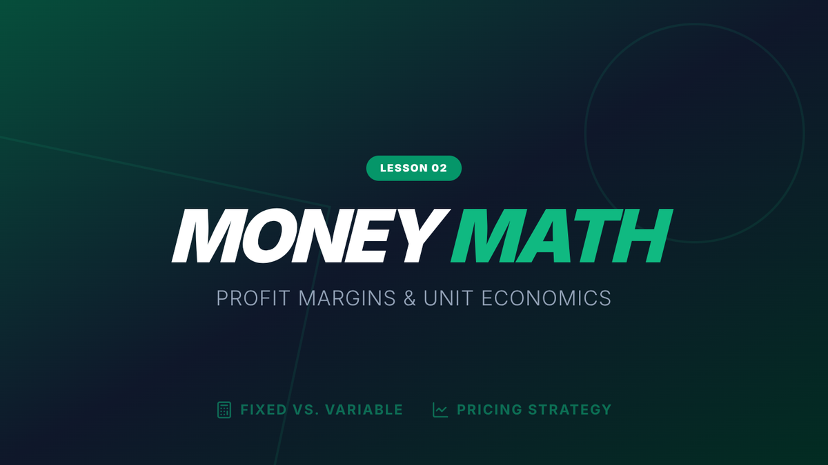 A 5-slide visual presentation for Lesson 2, focusing on the math of profitability, including fixed vs. variable costs and unit economics.