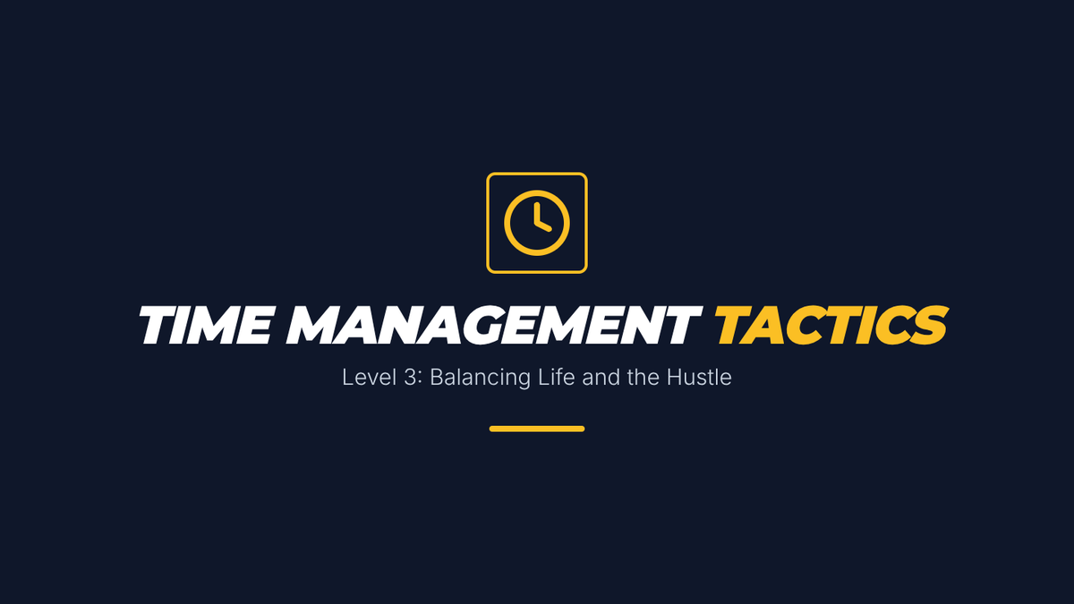 Instructional slides for Lesson 3 covering time management, opportunity cost, and the "Big Rocks" theory of prioritization.