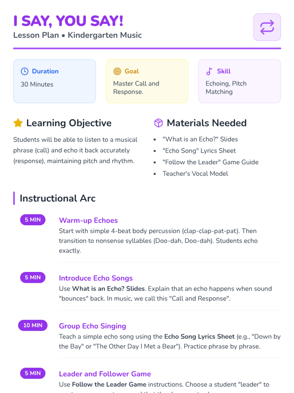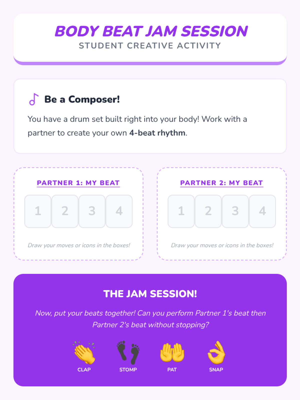 Students will explore the foundational elements of music by feeling the steady beat, creating rhythms with their bodies, and identifying different qualities of sound. This unit builds a solid auditory foundation through interactive games and hands-on activities for Kindergarteners.