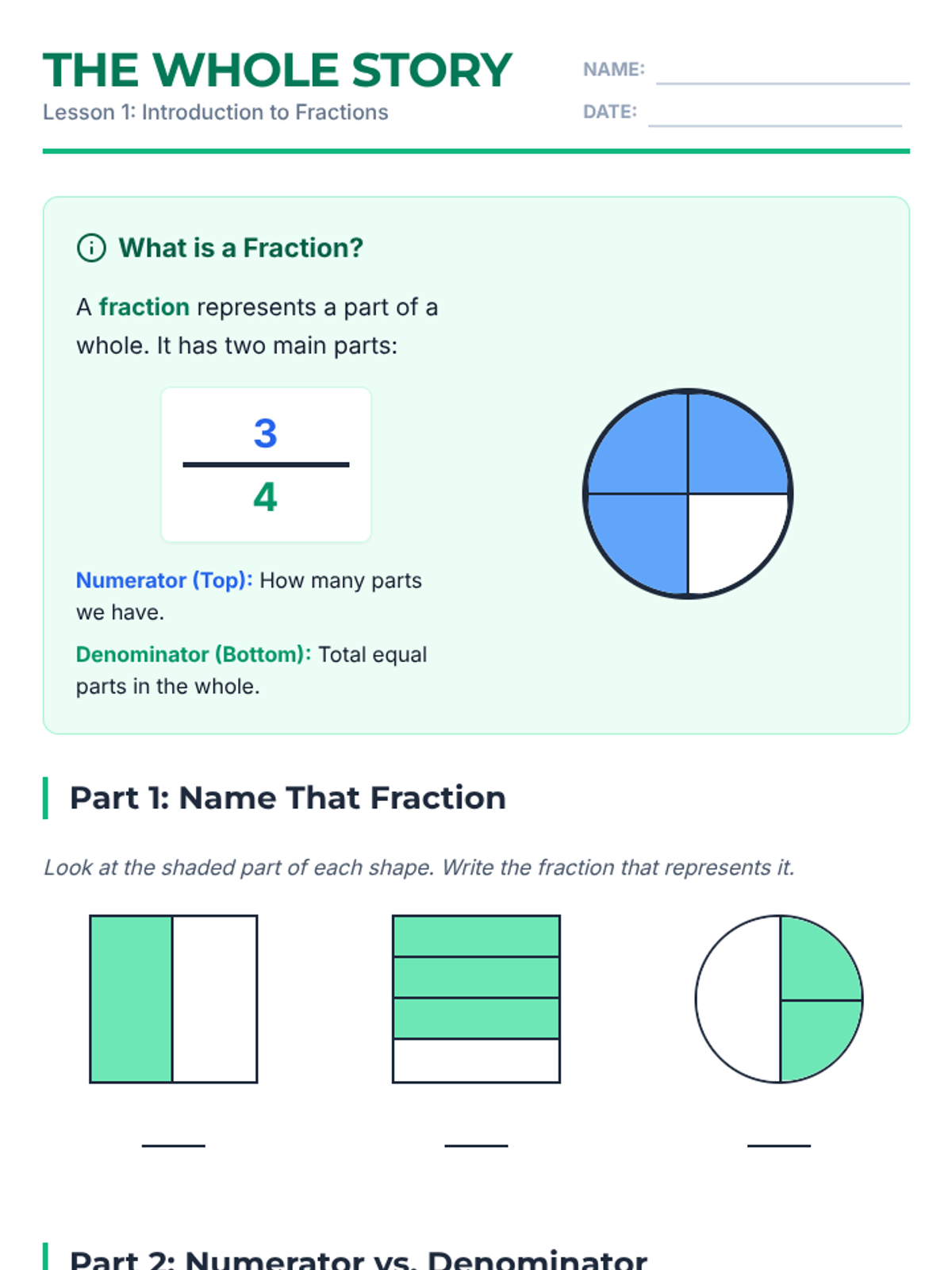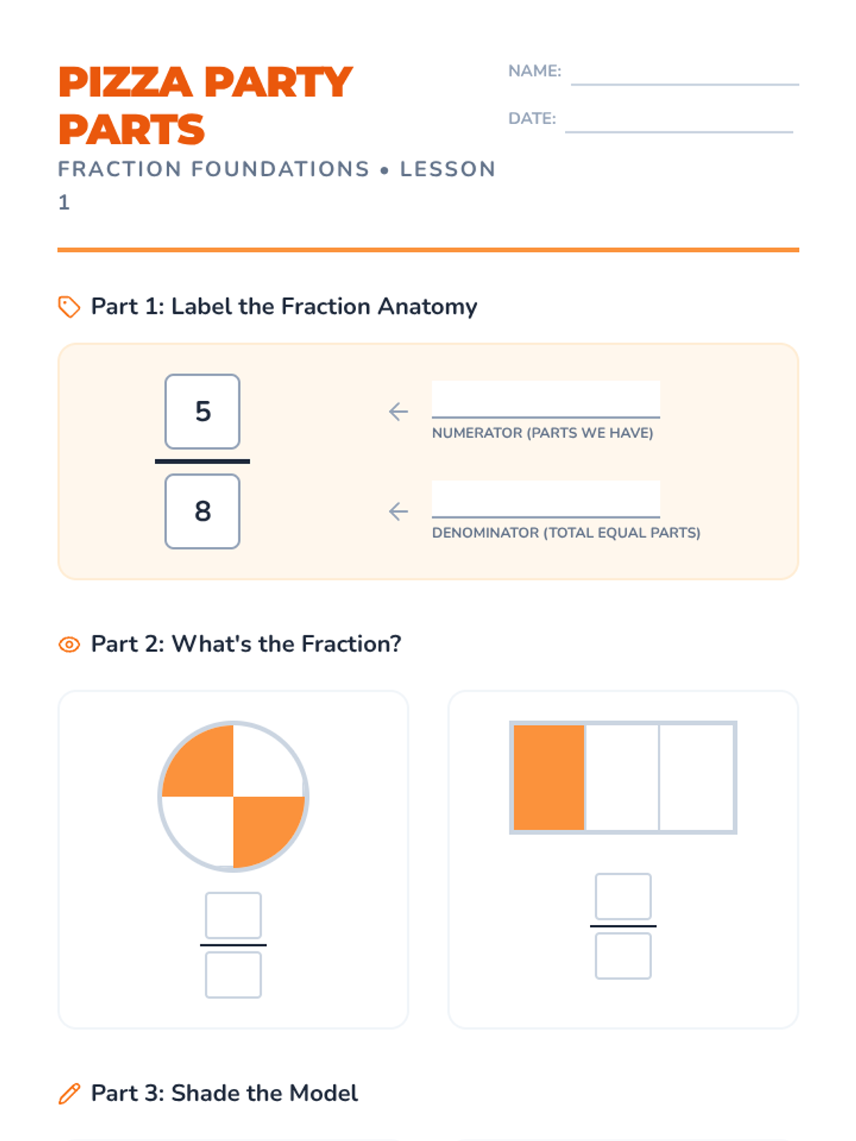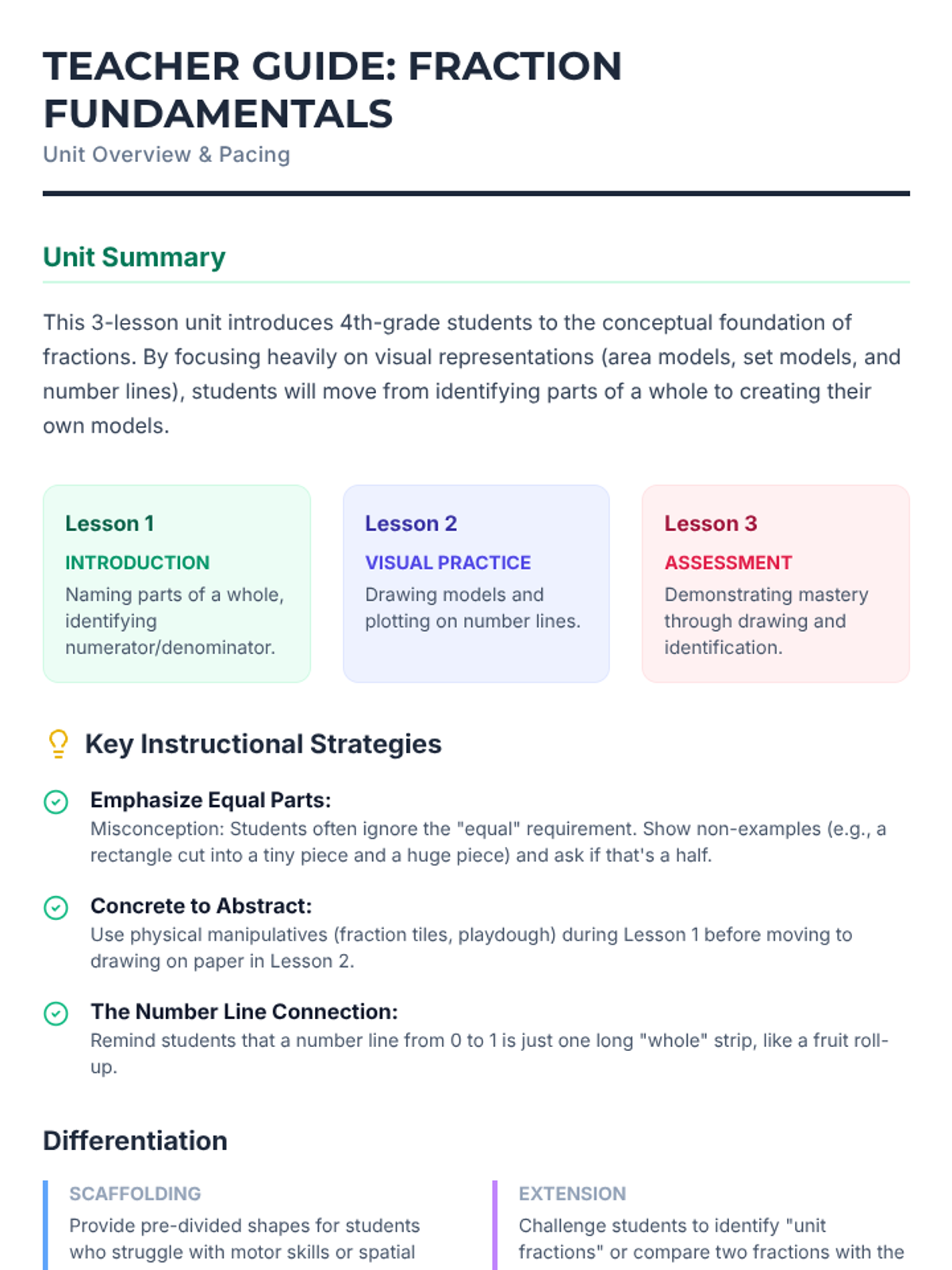 A 3-lesson unit for 4th graders focused on identifying and visually representing fractions through hands-on practice and clear visual models.